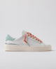 - Tomaia in pelle e suede bianca con cracklé bianco, dettagli in lamina turchese