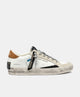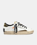 - White leather upper, olive green suede details